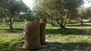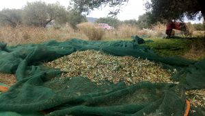 Wir ernten unsere Oliven zwischen Mitte November und Januar traditionell in Handarbeit. Im Gegensatz zu hochintensiv betriebenen Olivenplantagen kommen bei uns keine grossen vollautomatischen Erntemaschinen zum Einsatz. Durch die Hanglage unserer Olivenhaine und der traditionellen Anbaumethode, bei der die Abstände der Bäume nie für den Einsatz von schweren Maschinen angelegt wurden, ist eine industrielle Ernte weder möglich noch umweltfreundlich. Bei uns werden keine Vögel und andere Tiere von Erntemaschinen eingesaugt und unnötig getötet.